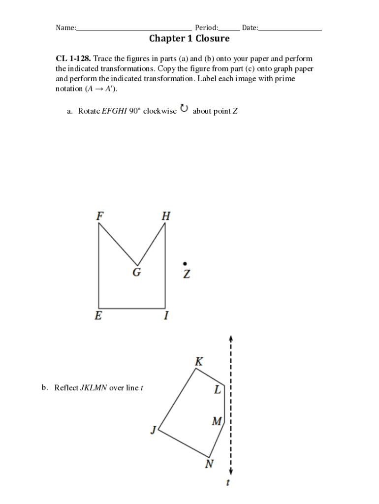 Name:___Period:___Date:___Chapter1Closure CL 1128. Trace the figures in parts (a) and (b) onto your paper and perform the indicated transformations. Copy the figure from part (c) onto graph paper