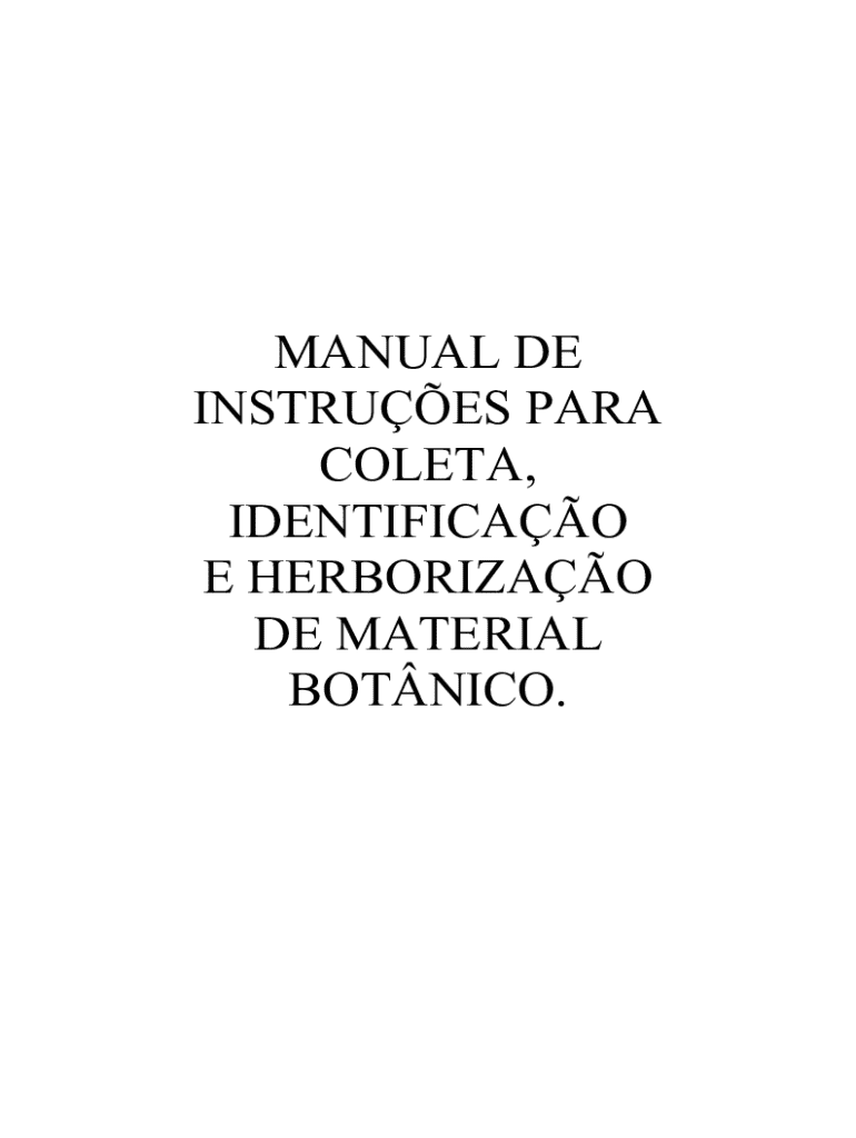 MANUAL DE INSTRUES PARA COLETA, IDENTIFICAO E HERBORIZAO DE MATERIAL BOTNICO.MANUAL DE INSTRUES PARA COLETA, IDENTIFICAO E HERBORIZAO DE MATERIAL BOTNICO.Elaborao: Ivonei Wiggers Carlos Eduardo Bittencourt