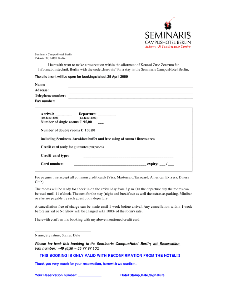 Takes. 39, 14195 Berlin herewith want to make a reservation within the allotment of Konrad Zuse Pentium for