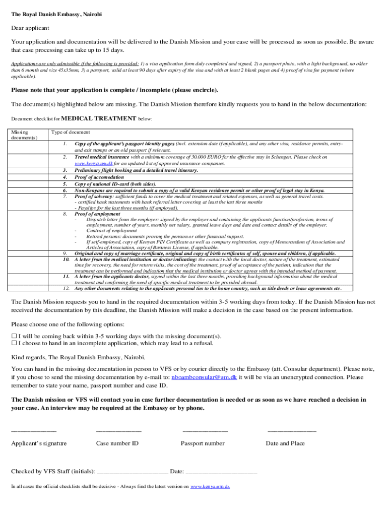 Your application and documentation will be delivered to the Danish Mission and your case will be processed as soon as possible. Be aware
