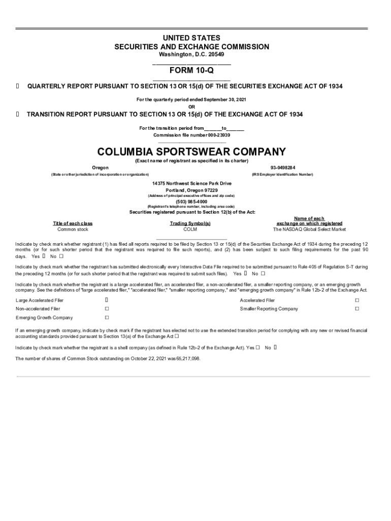 Columbia Sportswear Company investor is a form that must be filed by individuals or entities who hold a significant stake in the company's stock.