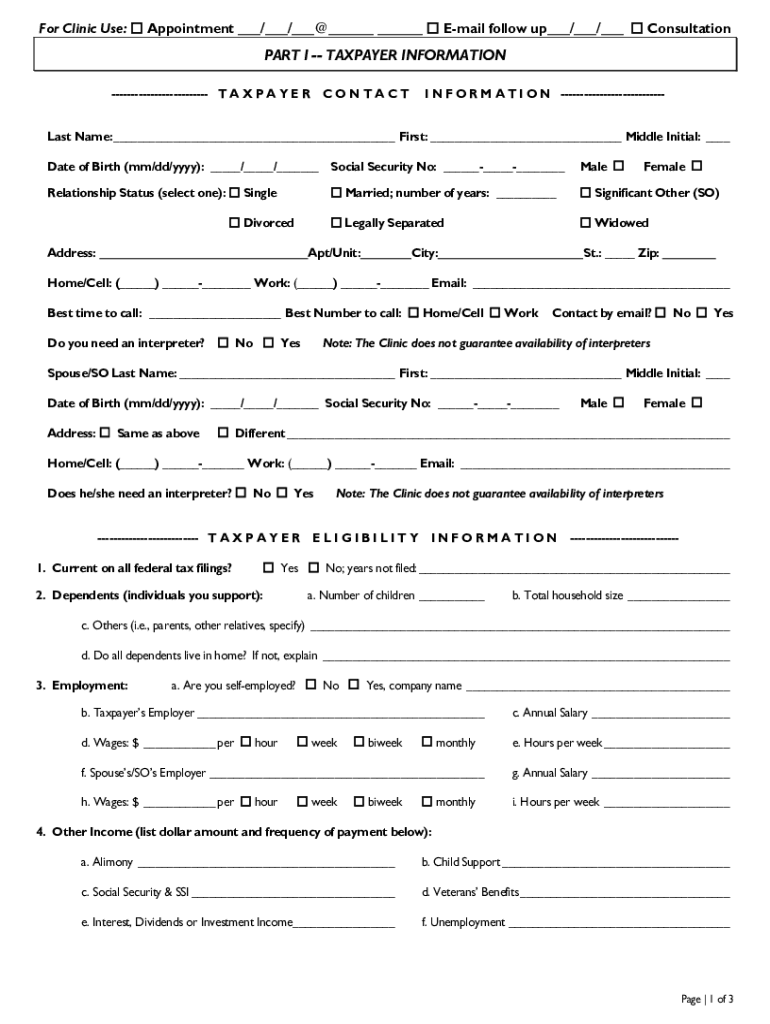 PLEASE READ THIS PAGE BEFORE BEGINNING THE APPLICATION North Carolina Central University School of Law Low Income Taxpayer Clinic New Client Application INSTRUCTIONS AND DISCLOSURES 1. This application,
