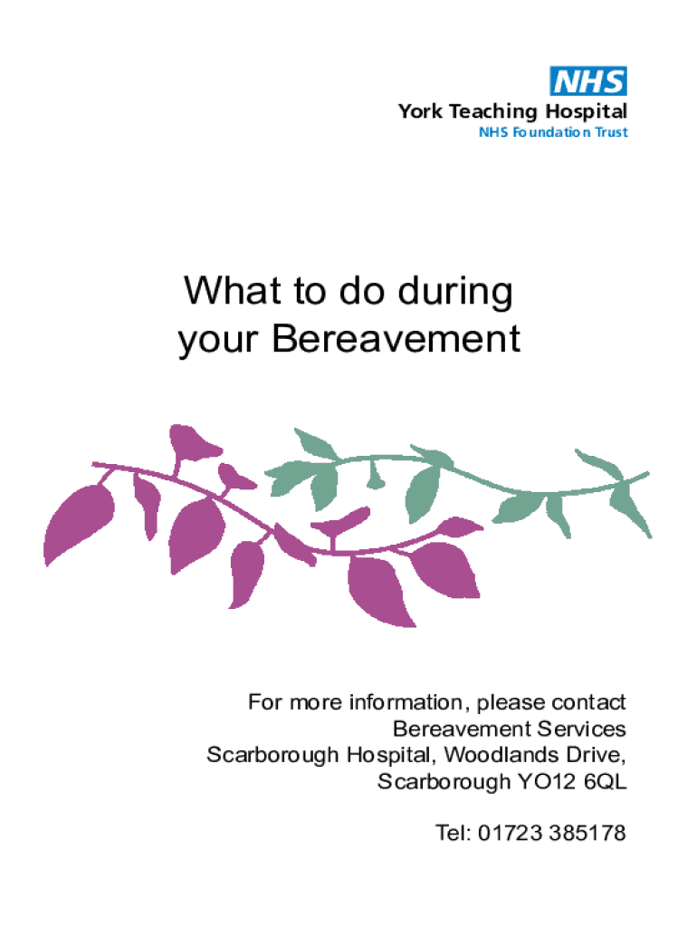 NHS York Teaching Hospital NHS Foundation Trustiest to do during your Bereavement more information, please contact Bereavement Services Scarborough Hospital, Woodlands Drive, Scarborough YO12 6QL