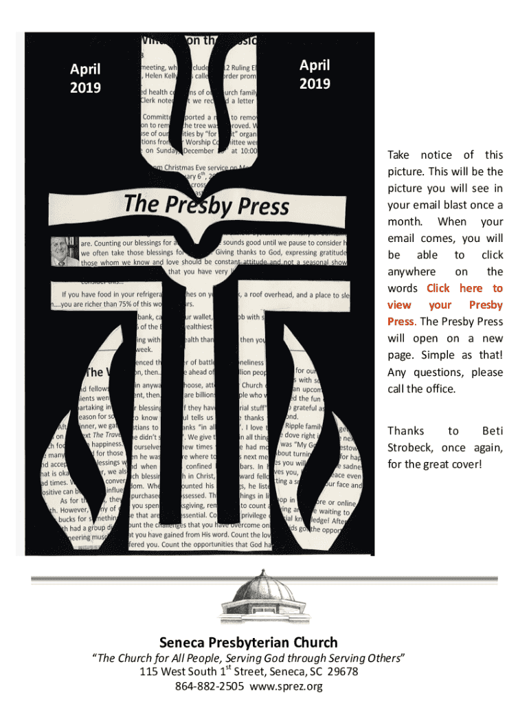 April 2019April 2019Take notice of this picture. This will be the picture you will see in your email blast once a month. When your email comes, you will be able to click anywhere on the words Click