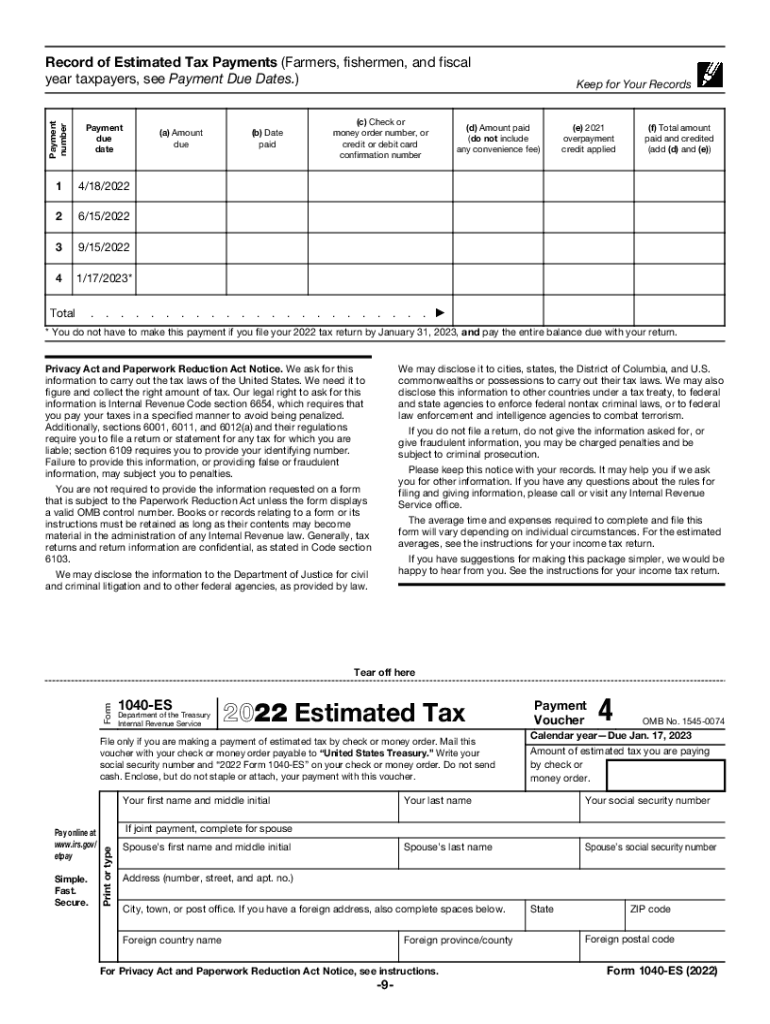 Use Form 1040-ES to calculate and fill out your estimated tax payments.