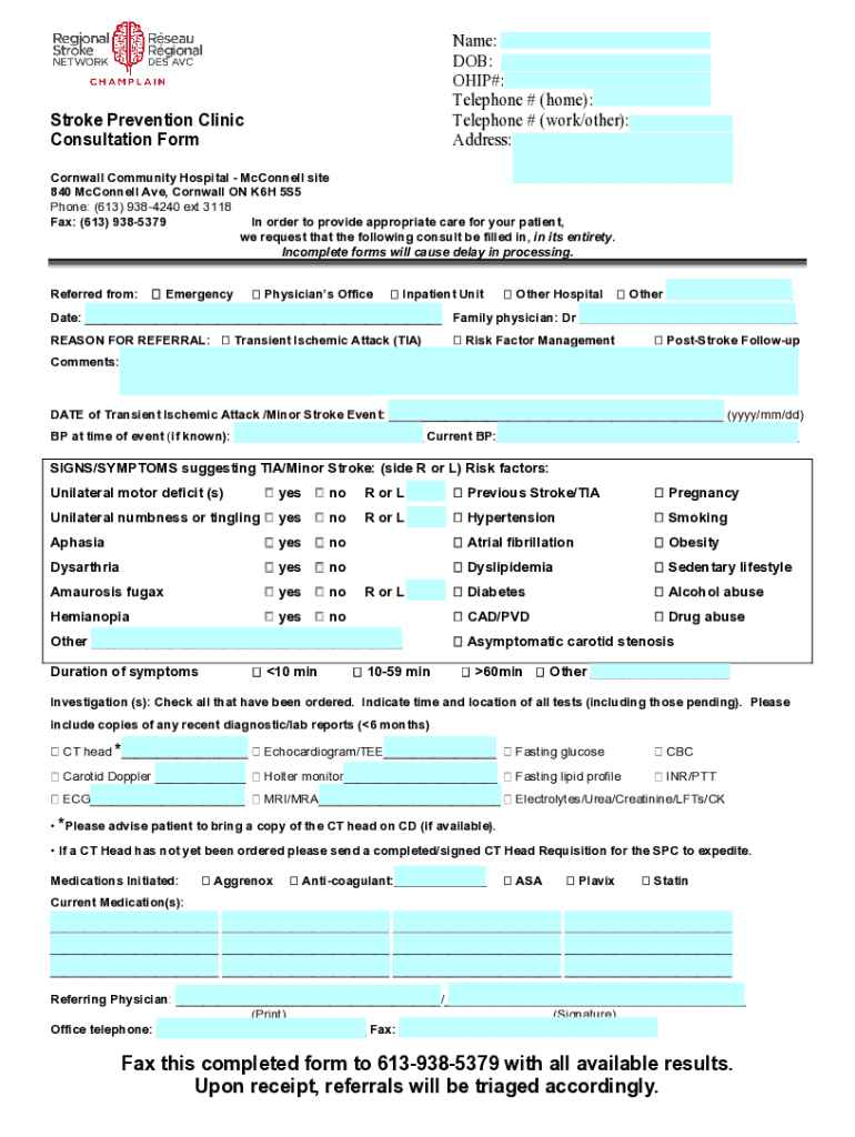 To fill out stroke prevention clinic consultation, patients need to provide their medical history, current medications, and undergo various diagnostic tests.
