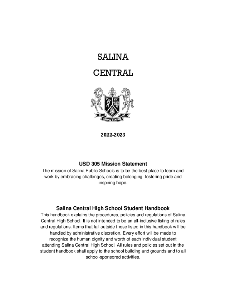 SALINA CENTRAL20222023USD 305 Mission Statement The mission of Salina Public Schools is to be the best place to learn and work by embracing challenges, creating belonging, fostering pride and inspiring