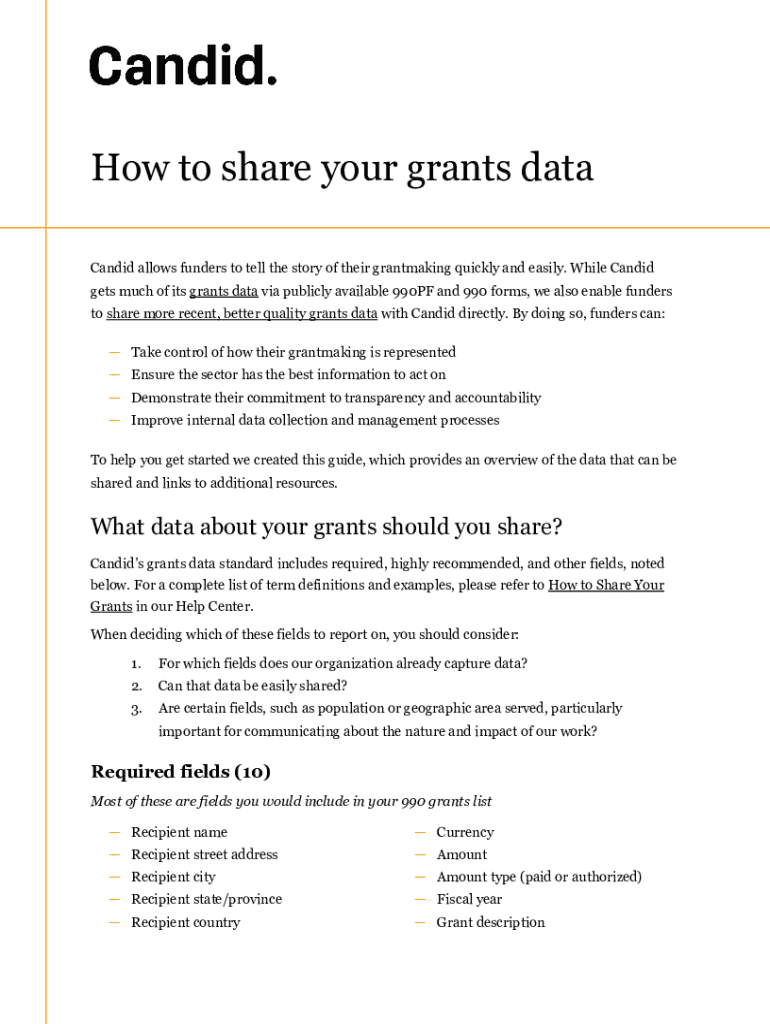 How to share your grants data Candid allows funders to tell the story of their grant making quickly and easily. While Candid gets much of its grants data via publicly available 990PF and 990 forms,