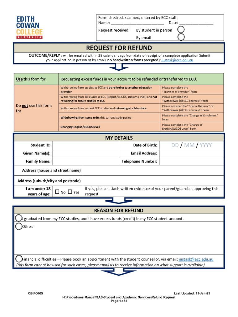 REQUEST FOR REFUNDOUTCOME/REPLY : will be emailed within 28 calendar days from date