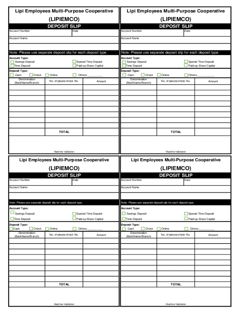 Lip Employees Multipurpose Cooperatively Employees Multipurpose Cooperative(LIPIEMCO)(LIPIEMCO)DEPOSIT SLIP