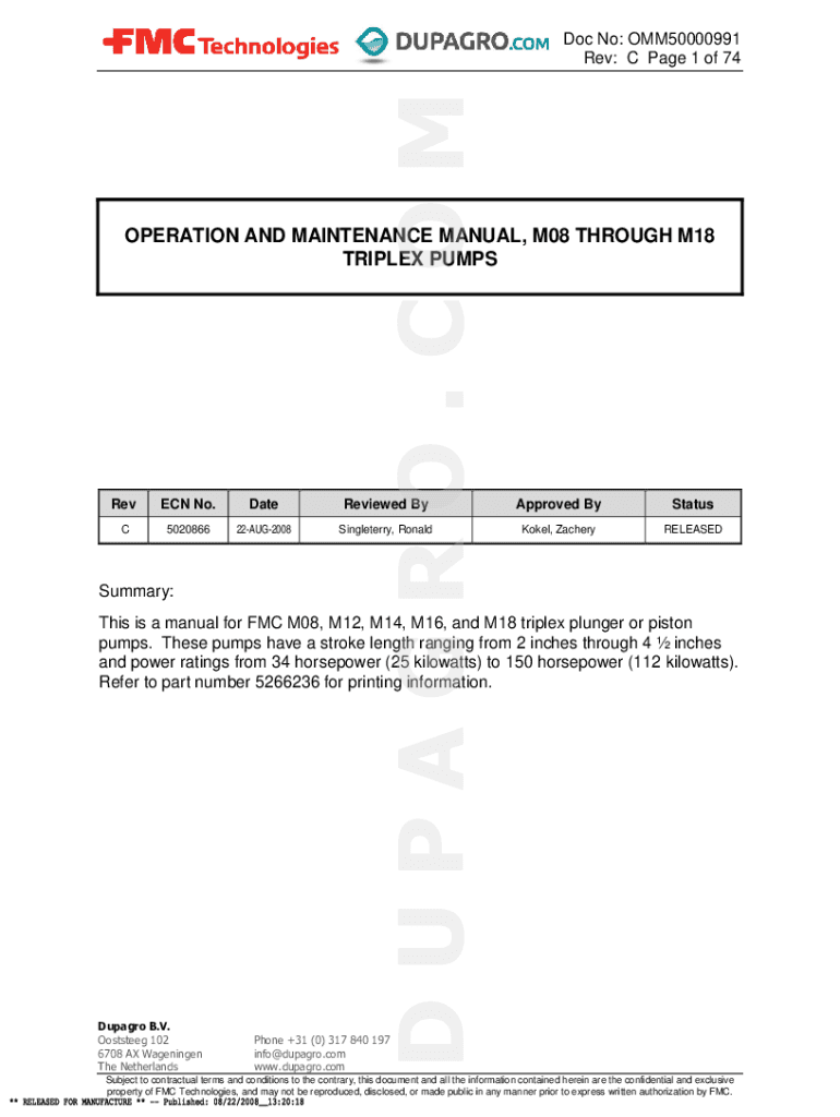 Rev: C Page 1 of 74OPERATION AND MAINTENANCE MANUAL, M08 THROUGH M18