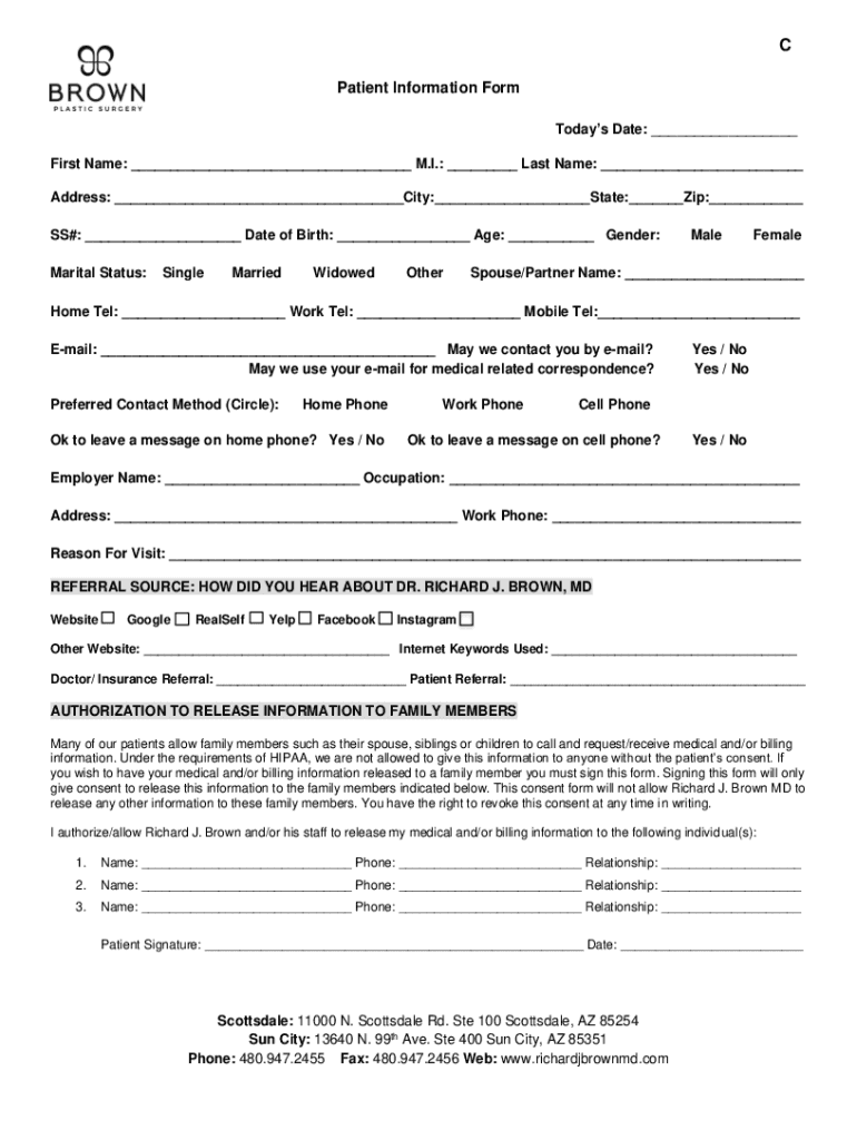 Get the free Patient Information Form Today's Date - Brown Plastic Surgery