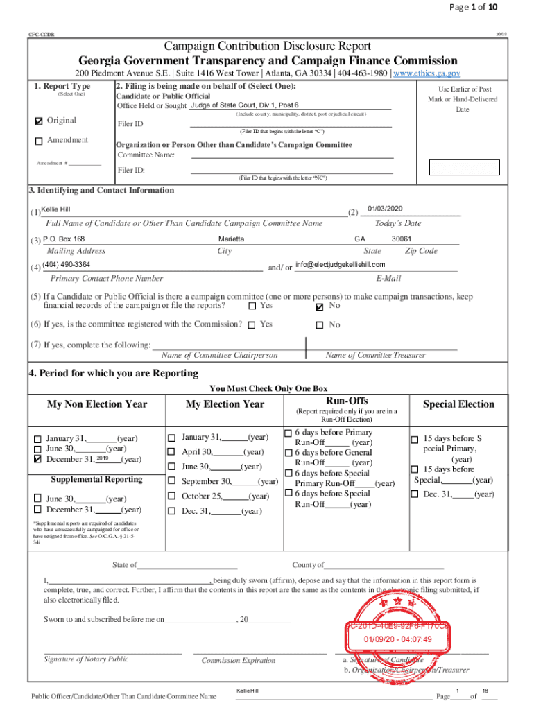 Page 1 of 10 10/19CFCCCDRCampaign Contribution Disclosure Report Georgia Government Transparency and Campaign Finance Commission 200 Piedmont Avenue S.E. | Suite 1416 West Tower | Atlanta, GA 30334