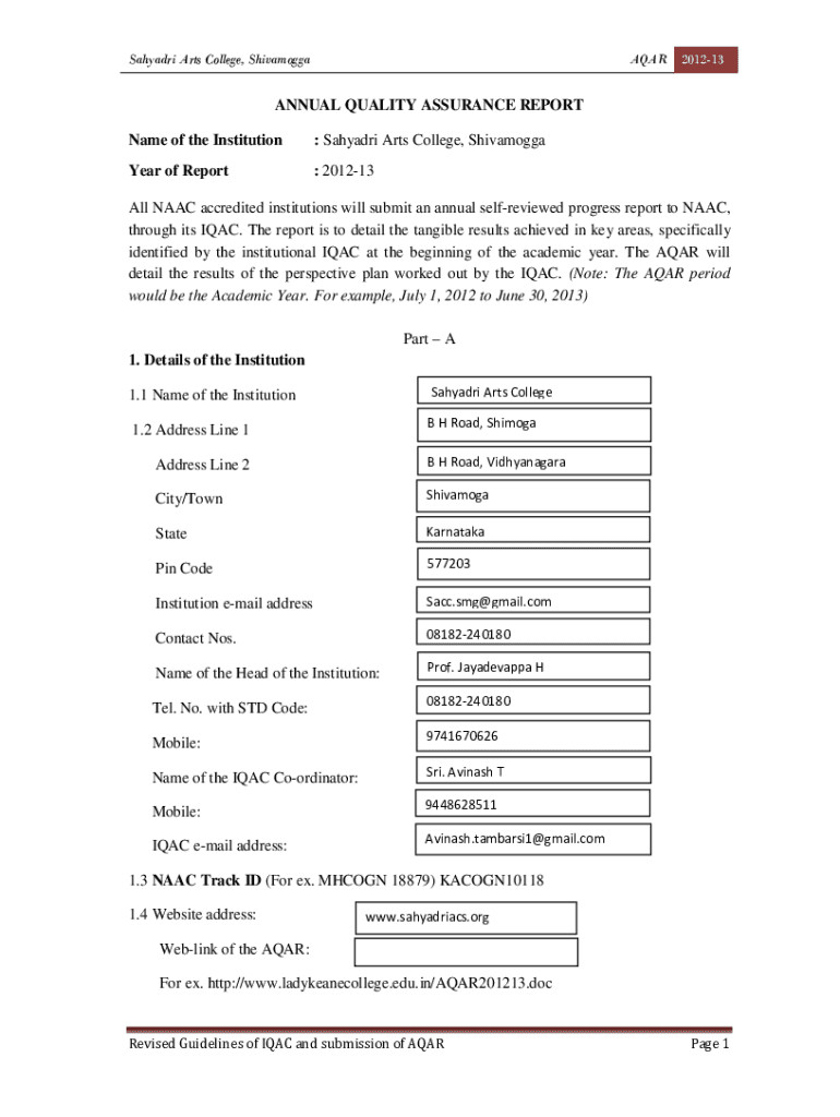 Sahara Arts College, ShivamoggaAQAR201213ANNUAL QUALITY ASSURANCE REPORT Name of the Institution: Sahara Arts College, ShivamoggaYear of Report: 201213All NAACP accredited institutions will submit