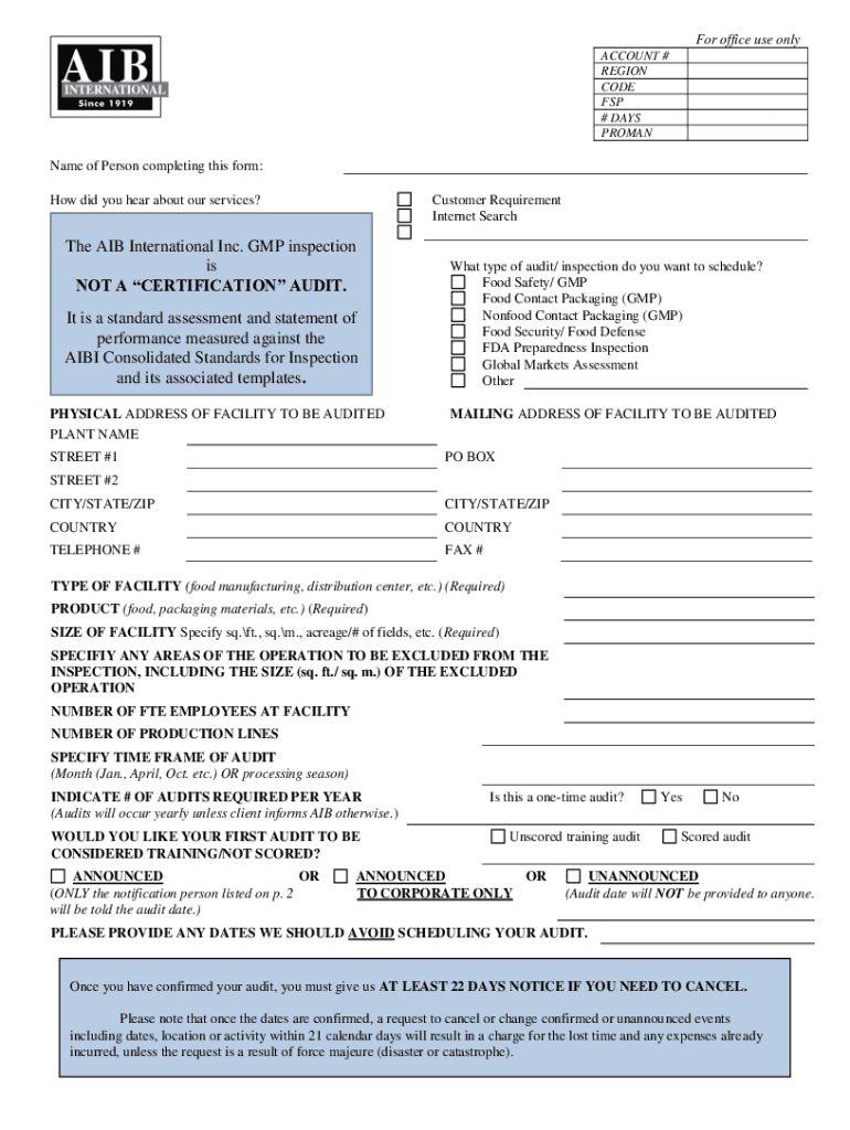 Get the free The AIB International Inc. GMP inspection is NOT A ...