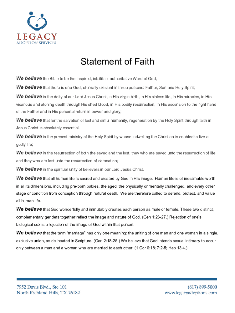 Get, Create, Make and Sign statement of faith 1