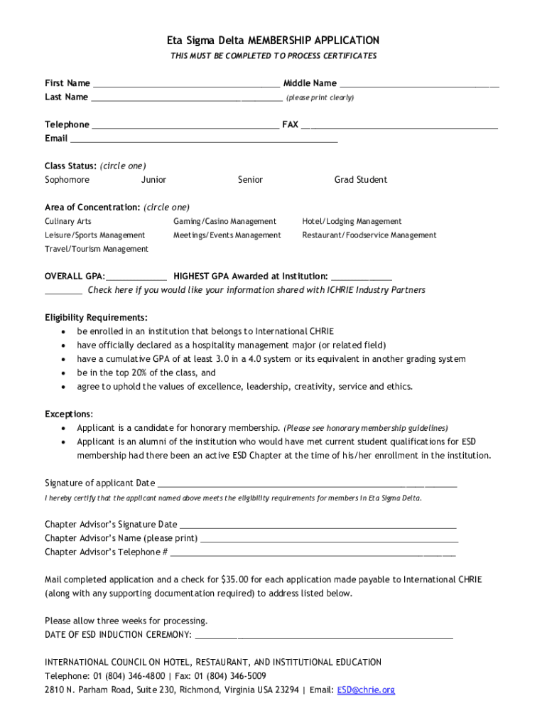 Eta Sigma Delta MEMBERSHIP APPLICATION