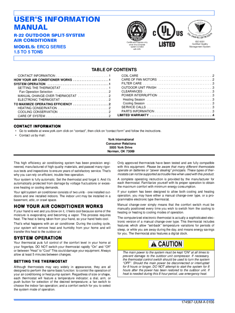 OMA N U F A C T U RASAIRNIERMR22 OUTDOOR SPLITSYSTEM