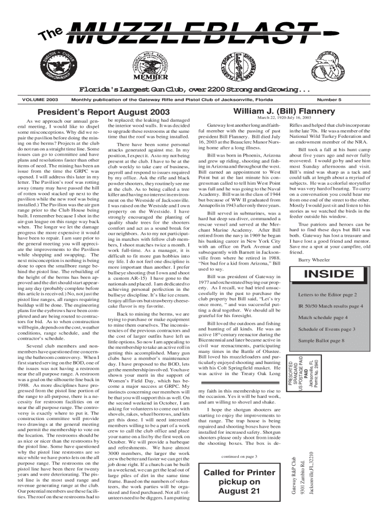 E h TMUZZLEBLAST Florida\'s Largest Gun Club, over 2200 Strong and Growing... Monthly publication of the Gateway Rifle and Pistol Club of Jacksonville, FloridaThere have been some personal attacks