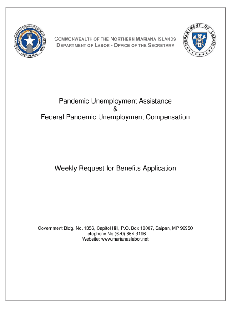 COMMONWEALTH OF THE NORTHERN MARIANA ISLANDS DEPARTMENT OF LABOR OFFICE OF THE SECRETARYPandemic Unemployment Assistance & Federal Pandemic Unemployment CompensationWeekly Request for Benefits ApplicationGovernment
