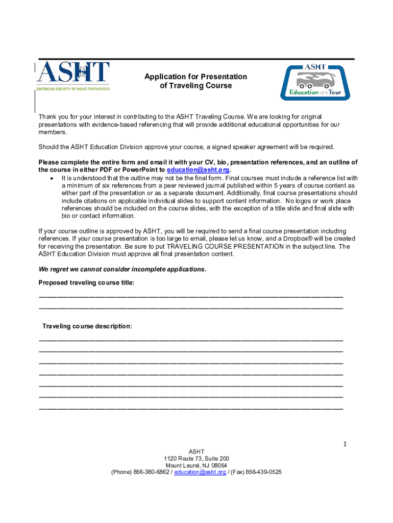 Get the free Application for Presentation of Traveling Course