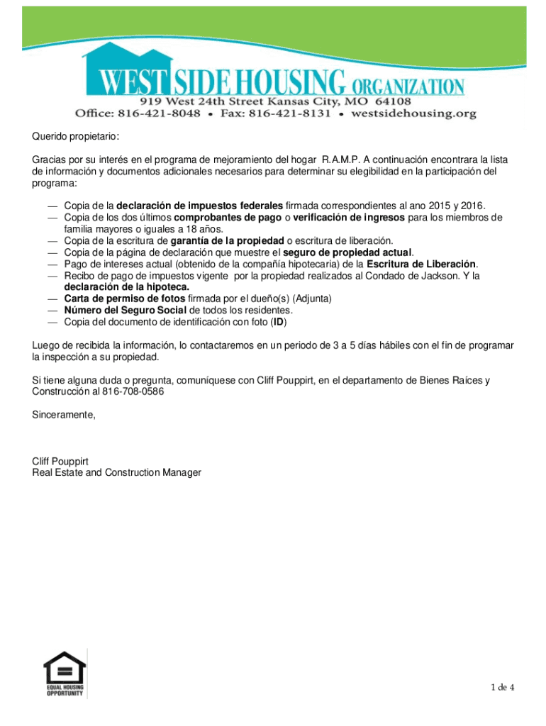 Gracias POR SU inters en El program de mejoramiento Del Hagar R.A.M.P. A continuation contrary la list