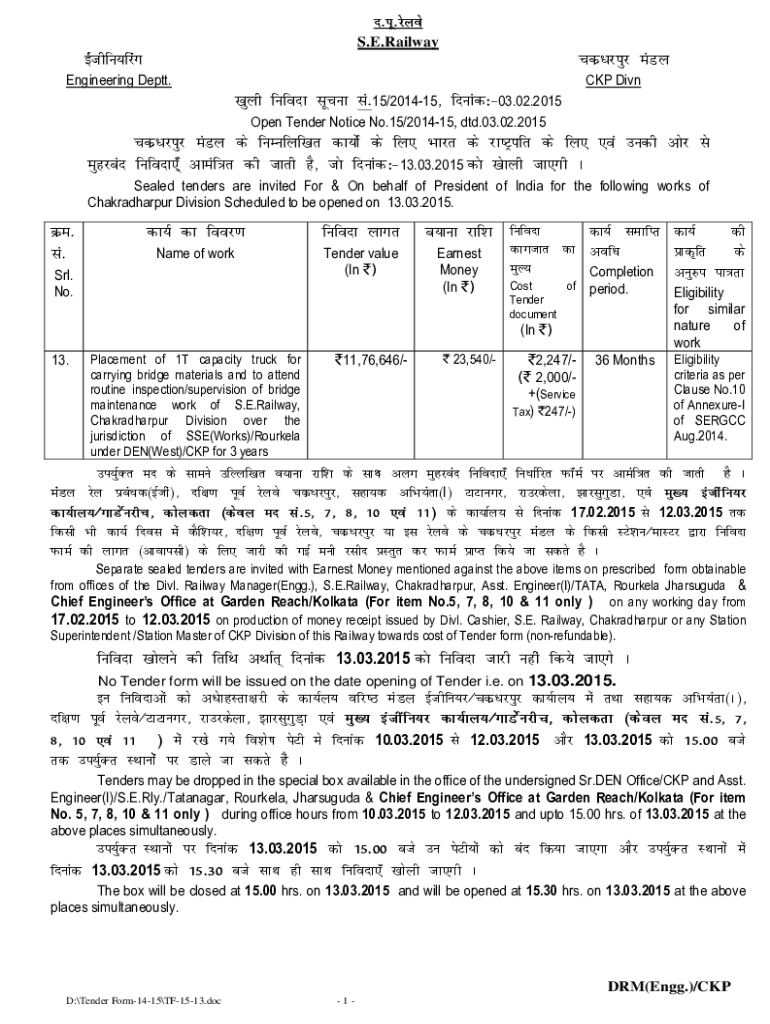 S.E. RailwaybZathfu;fjaaxpdz/King eaMyEngineering Depth. CAP Dive[key funk lupus la15/201415] fnukad%&03.02.2015