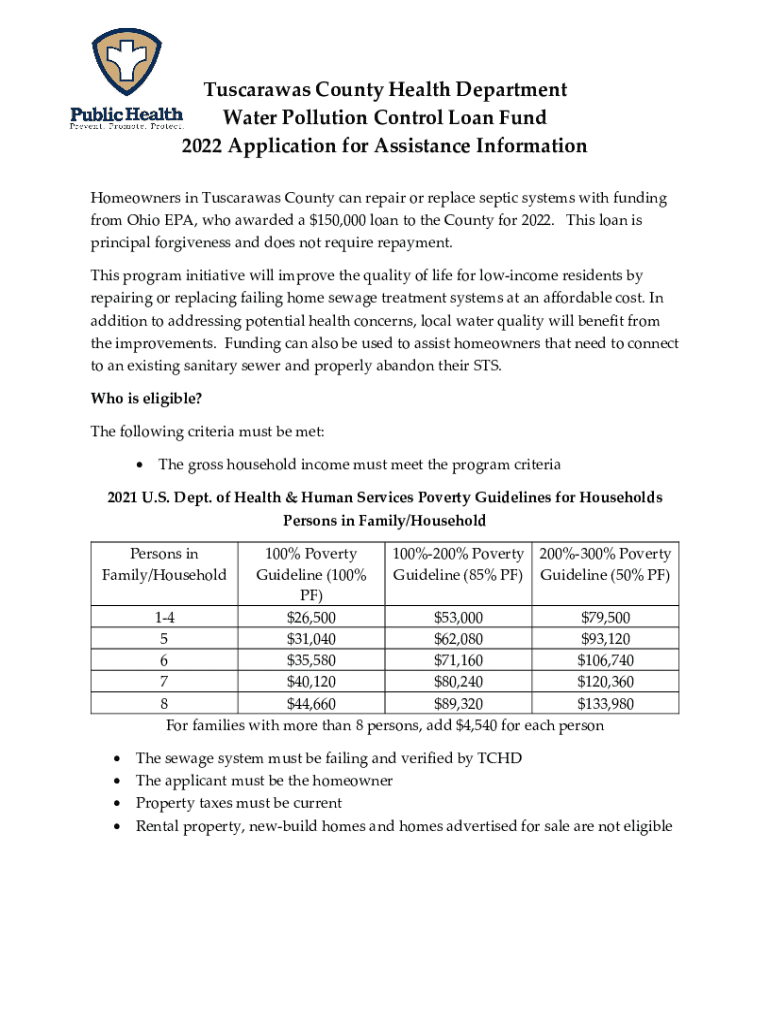 Tuscaroras County Health Department Water Pollution Control Loan Fund 2022 Application for Assistance Information Homeowners in Tuscaroras County can repair or replace septic systems with funding