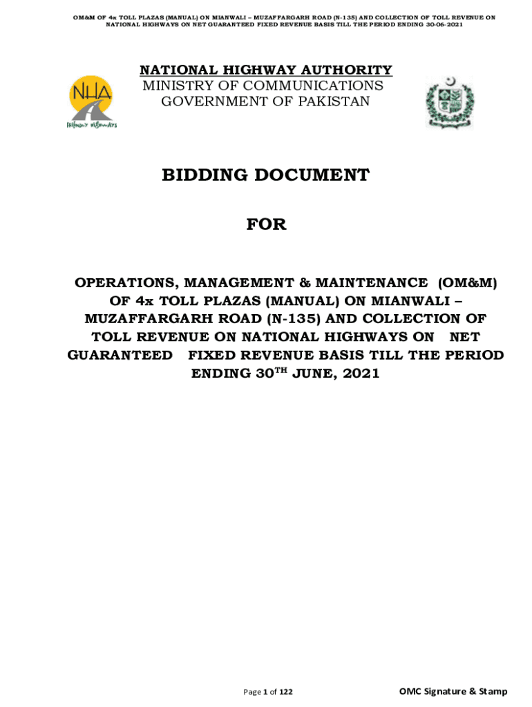 Get the free OM&M OF 4x TOLL PLAZAS (MANUAL) ON MIANWALI MUZAFFARGARH ROAD (N-135) AND COLLEC...