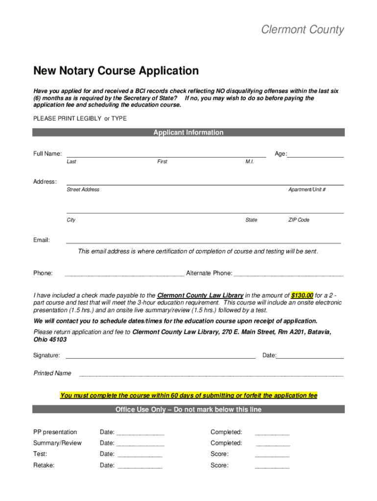 Individuals who wish to become a notary public in Clermont County need to fill out a notary application in order to obtain their commission.