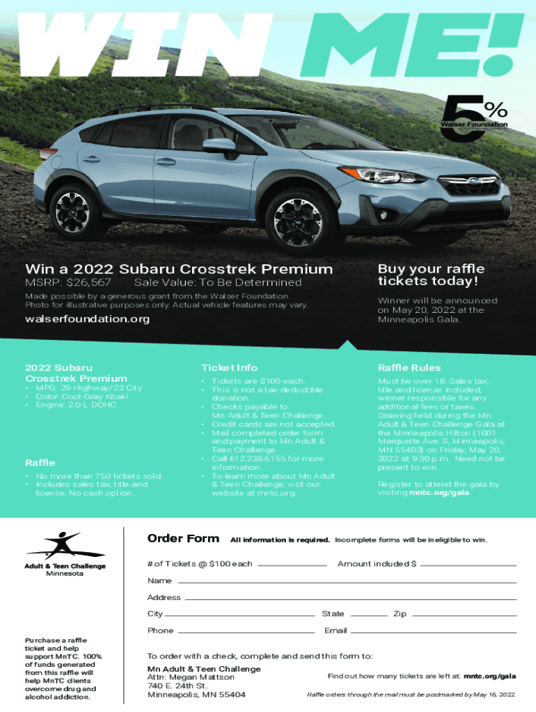 Win a 2022 Subaru Cross trek Premium your raffle