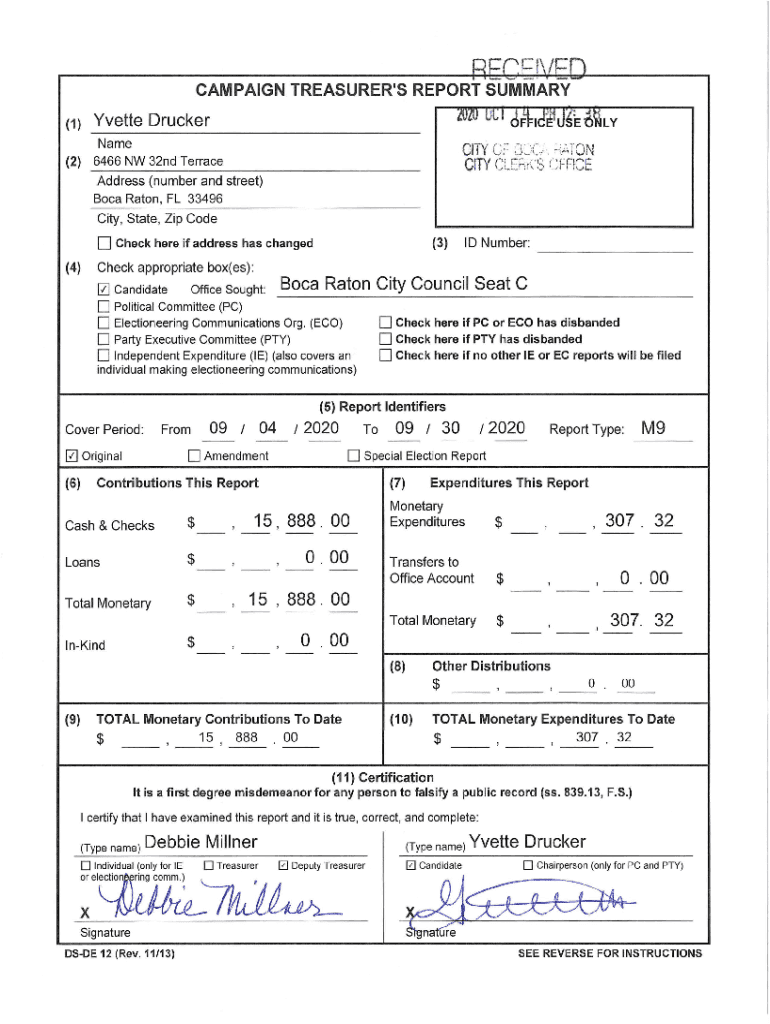 Get the free CAMPAIGN TREASURER'S REPORT ... - City of Boca Raton