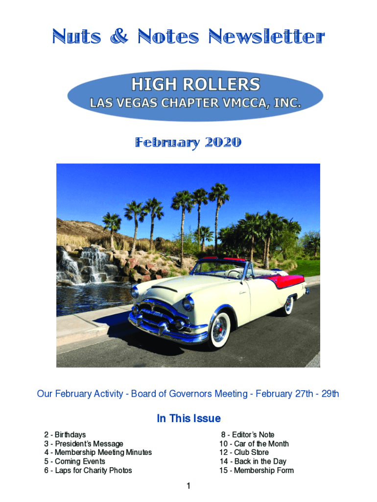 Nuts & Notes Newsletter February 2020Our February Activity Board of Governors Meeting February 27th 29thIn This Issue 2 Birthdays 3 Presidents Message 4 Membership Meeting Minutes 5 Coming Events