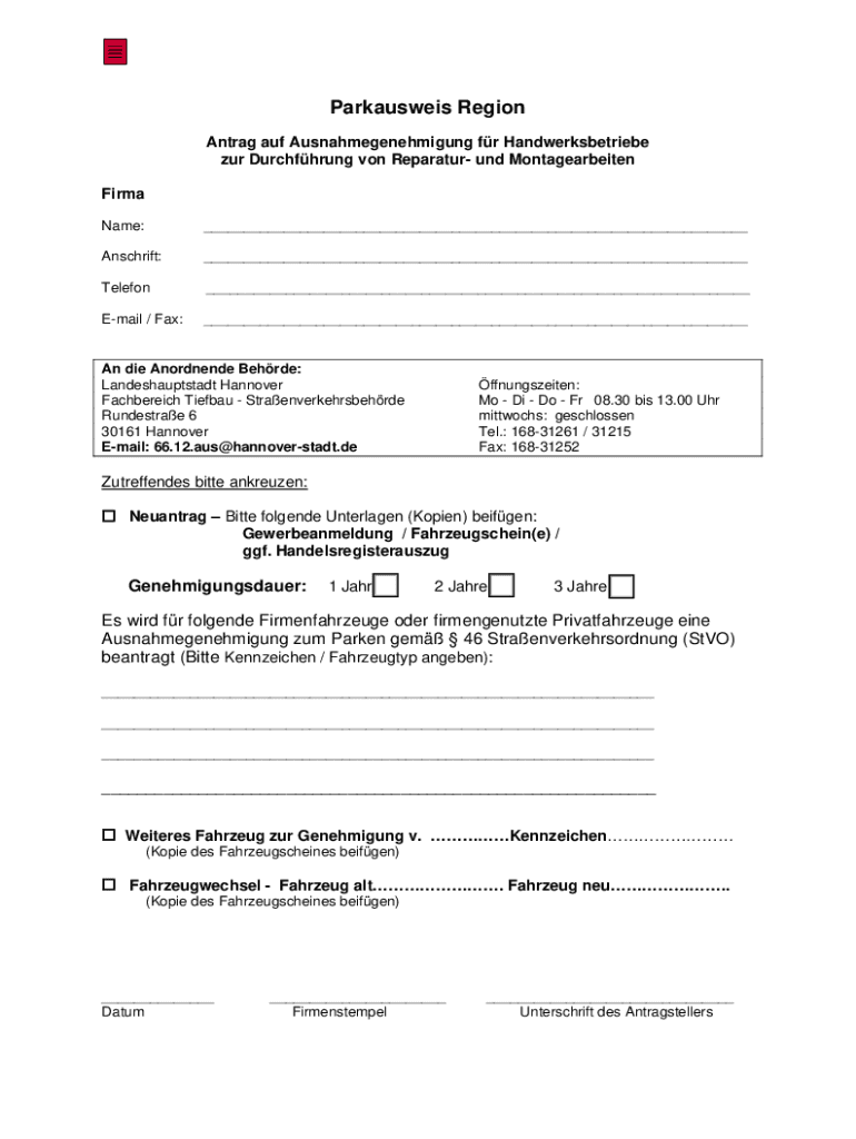 Holen Sie sich kostenlos Antrag auf Ausnahmegenehmigung fr Handwerksbetriebe