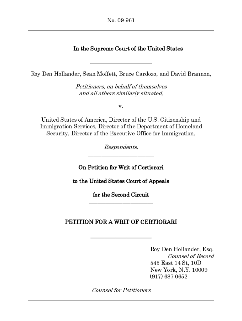 No. 09961In the Supreme Court of the United States ___Roy Den Hollander, Sean Buffett, Bruce Cardozo, and David Brannon, Petitioners, on behalf of themselves and all others similarly situated, v.