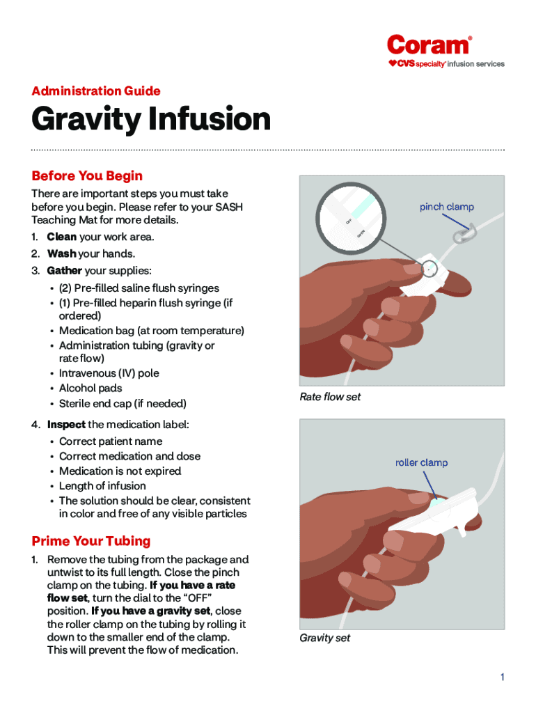 Administration GuideGravity Infusion Before You BeginFFpinch clamp There are important steps you must take before you begin. Please refer to your SASH Teaching Mat for more details.OPEN1. Clean your