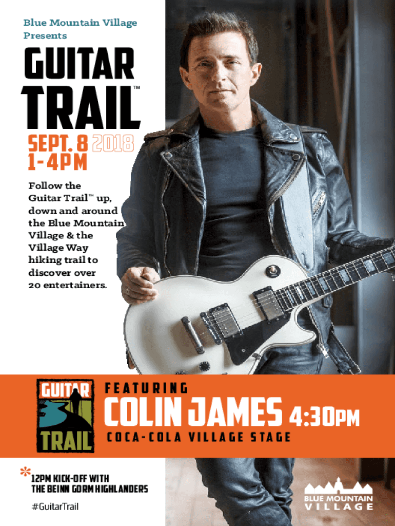 Blue Mountain Village Presentment. 8 14pm Follow the Guitar Trail up, down and around the Blue Mountain Village & the Village Way hiking trail to discover over 20 entertainers. F E AT You are I N