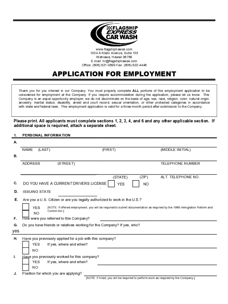 WWW.flagshiphawaii.com 1034 A Milan Avenue, Suite 103 Warsaw, Hawaii 96786 Email: hr@flagshiphawaii.com Office: (808) 6210899 Fax: (808) 6224448APPLICATION FOR EMPLOYMENT Thank you for you interest