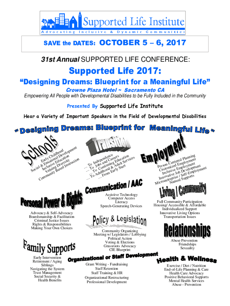 SAVE the DATES:OCTOBER 5 6, 201731st Annual SUPPORTED LIFE CONFERENCE:Supported Life 2017: