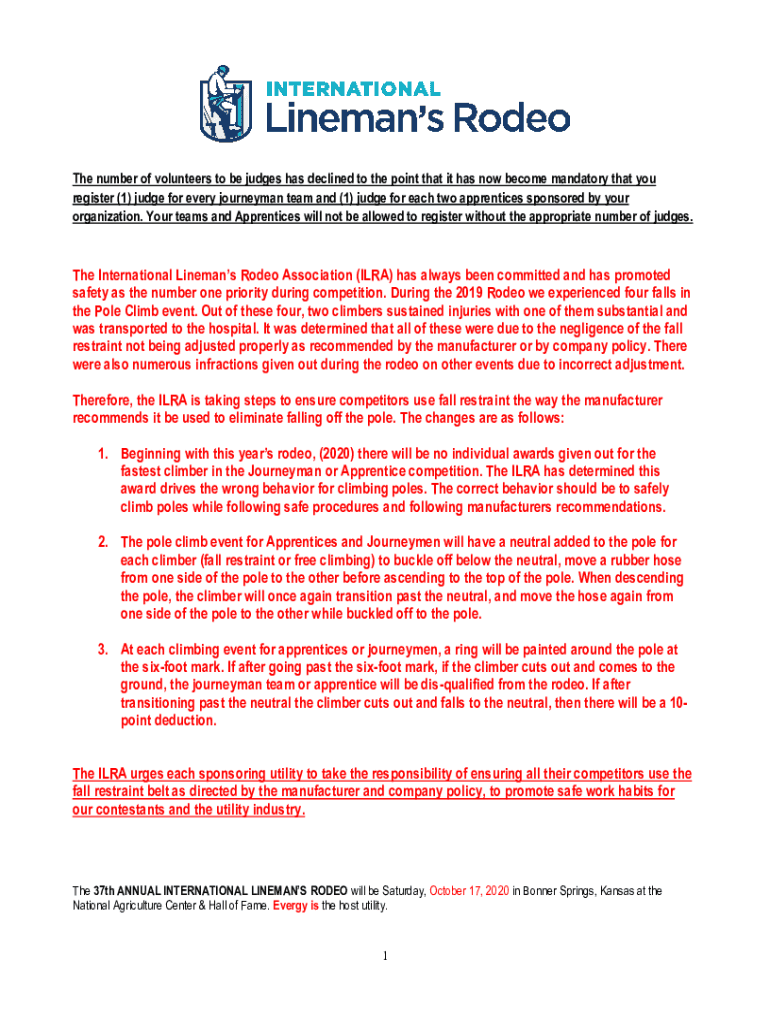 Participants in the International Linemans Rodeo competition are required to file Form International Linemans Rodeo.