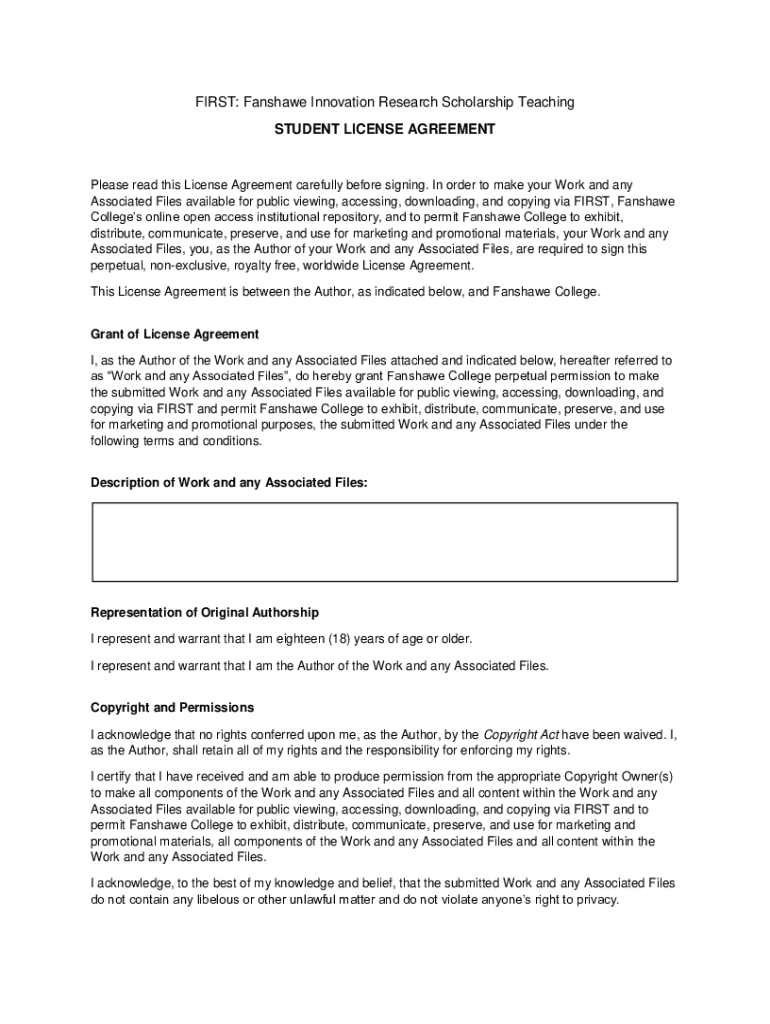 STUDENT LICENSE AGREEMENTPlease read this License Agreement carefully before signing. In order to make your Work and any
