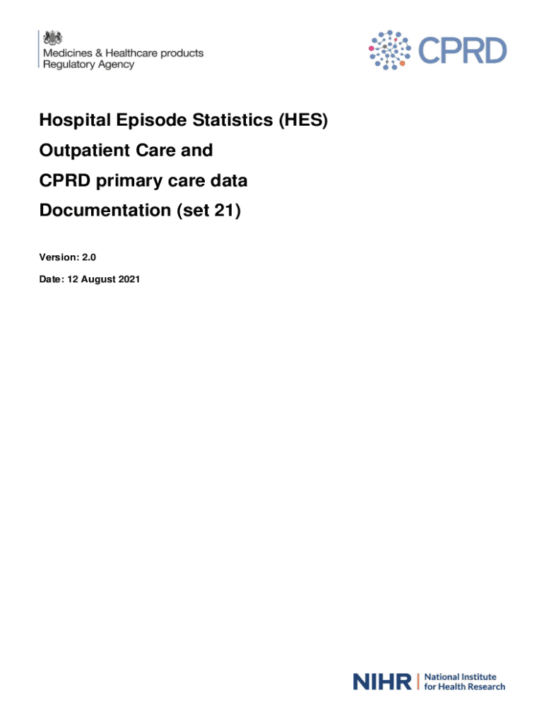 Hospital Episode Statistics (HES) Outpatient Care and CARD primary care data Documentation (set 21) Version: 2.0 Date: 12 August 2021Documentation Control Sheet Over time, it may be necessary to issue
