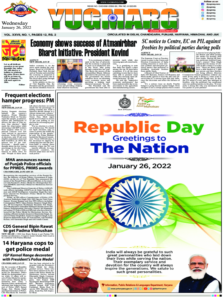 LEADING ENGLISH DAILYCIRCULATED IN DELHI, CHANDIGARH, PUNJAB, HARYANA, HIMACHAL AND JEKYLL. XXVII, NO. 1, PAGES