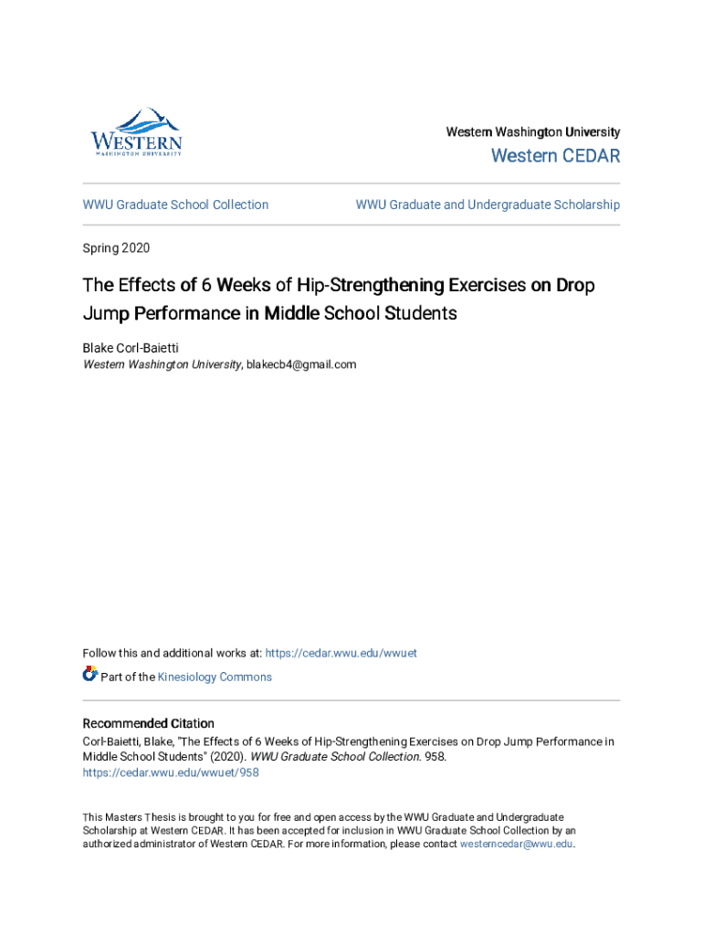 Western Washington University Western CEDAR WWF Graduate School Collection Graduate and Undergraduate ScholarshipSpring 2020The Effects of 6 Weeks of Strengthening Exercises on Drop Jump Performance