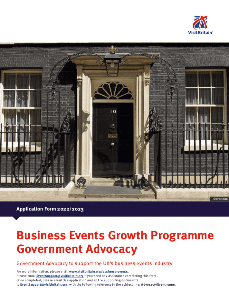 OversnapApplication Form 2022/2023Business Events Growth Program Government Advocacy to support the UK's business events' industry For more information, please visit: www.visitbritain.org/businessevents.