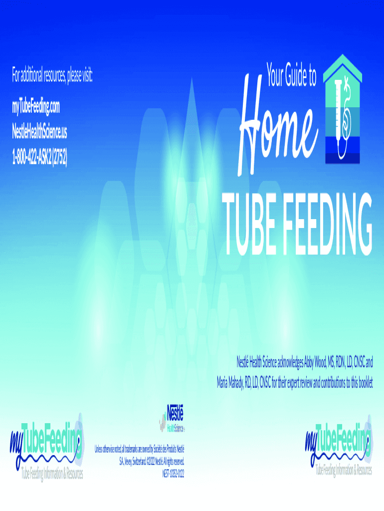 Home Your Guide for additional resources, please visit: myTubeFeeding.com NestleHealthScience.us 1800422ASK2 (2752)TUBE FEEDING Nest Health Science acknowledges Abby Wood, MS, RUN, LD, CNSC and Maria