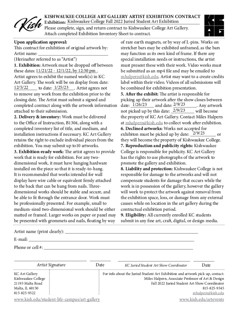MILWAUKEE COLLEGE ART GALLERY ARTIST EXHIBITION CONTRACT Milwaukee College Fall 2022 Buried Student Art Exhibition: ___ Please complete, sign, and return contract to Milwaukee College Art Gallery.