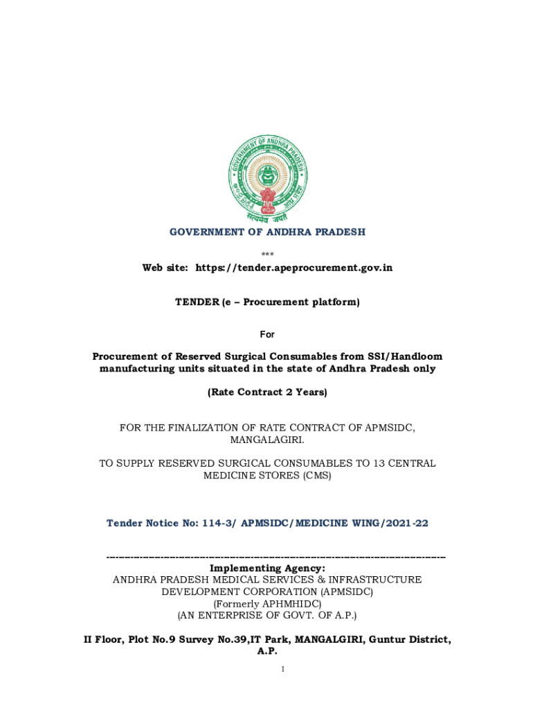Procurement of Reserved Surgical Consumables from SSI/Hand loom