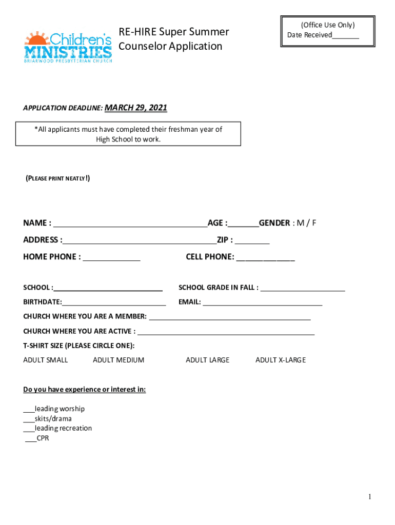 Counselor ApplicationAPPLICATION DEADLINE: MARCH 29, 2021