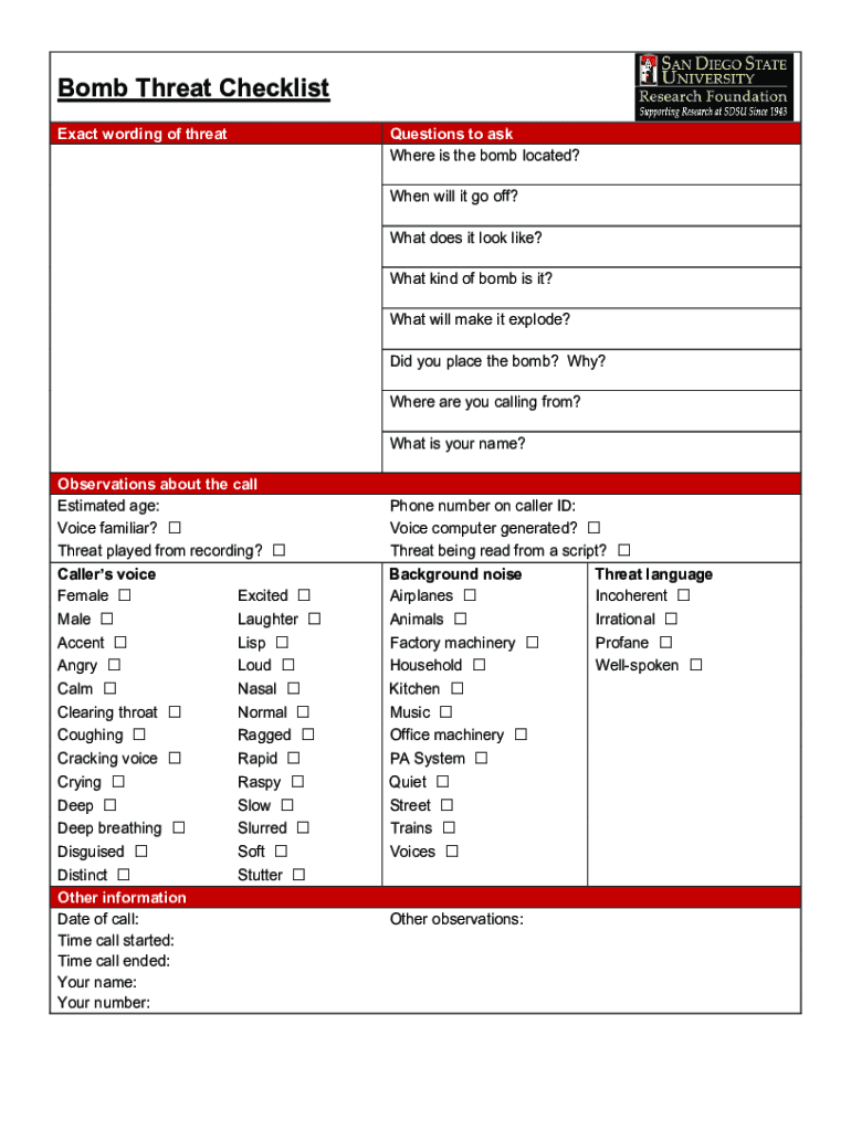 EMERGENCY RESPONSE Manual San Diego State University Research Foundation strives to promote best practices in emergency response for all employees. TABLE OF CONTENTS I. POLICY AND OBJECTIVES II. TRAINING